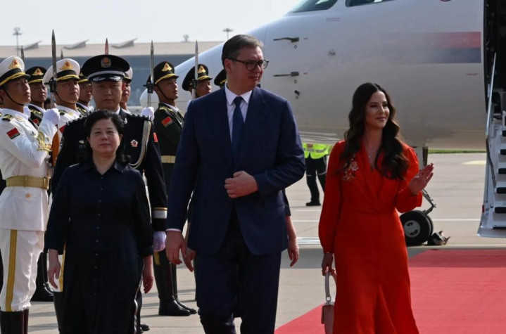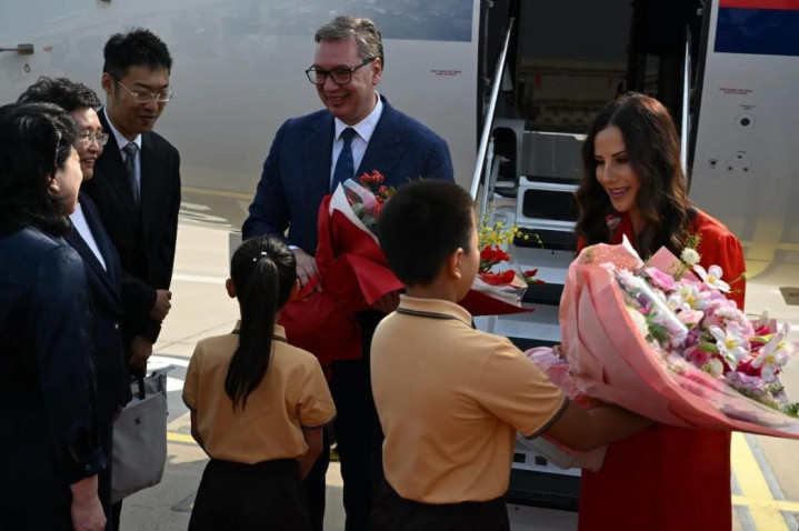 据悉,塞尔维亚夫人抵达北京机场时更靓丽,一袭中国红连衣裙走在机场的红毯上,在高清镜头下美得光彩照人!